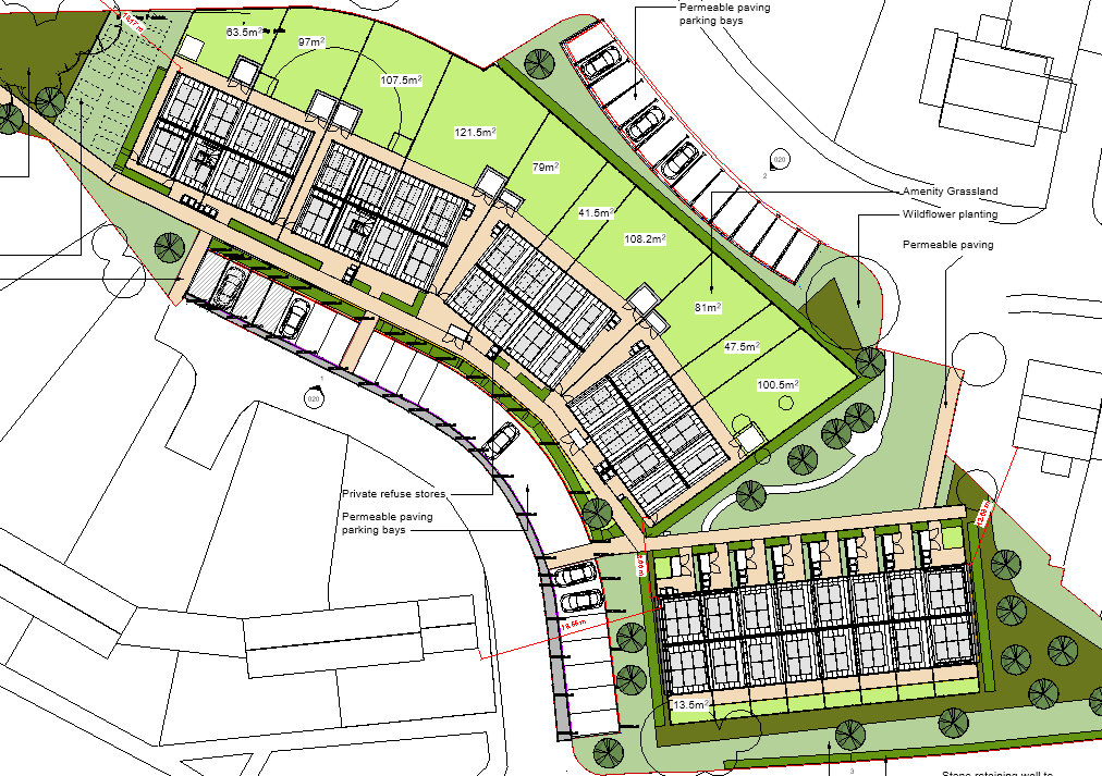 Thank you for your question, please see the image showing the size of the gardens at our School Close development. It may be difficult to see on this platform, if you would like me to send you a copy, please email commercial@middevon.gov.uk and I can send you the image.